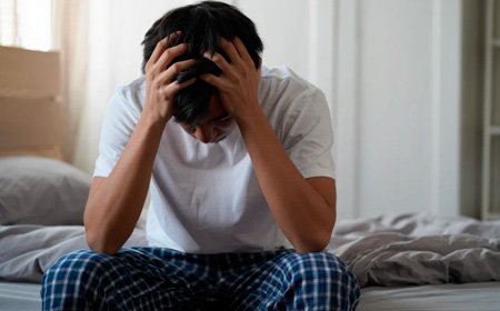 Мужчина сидит на кровати